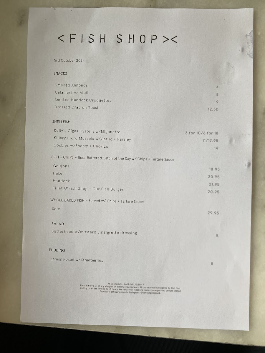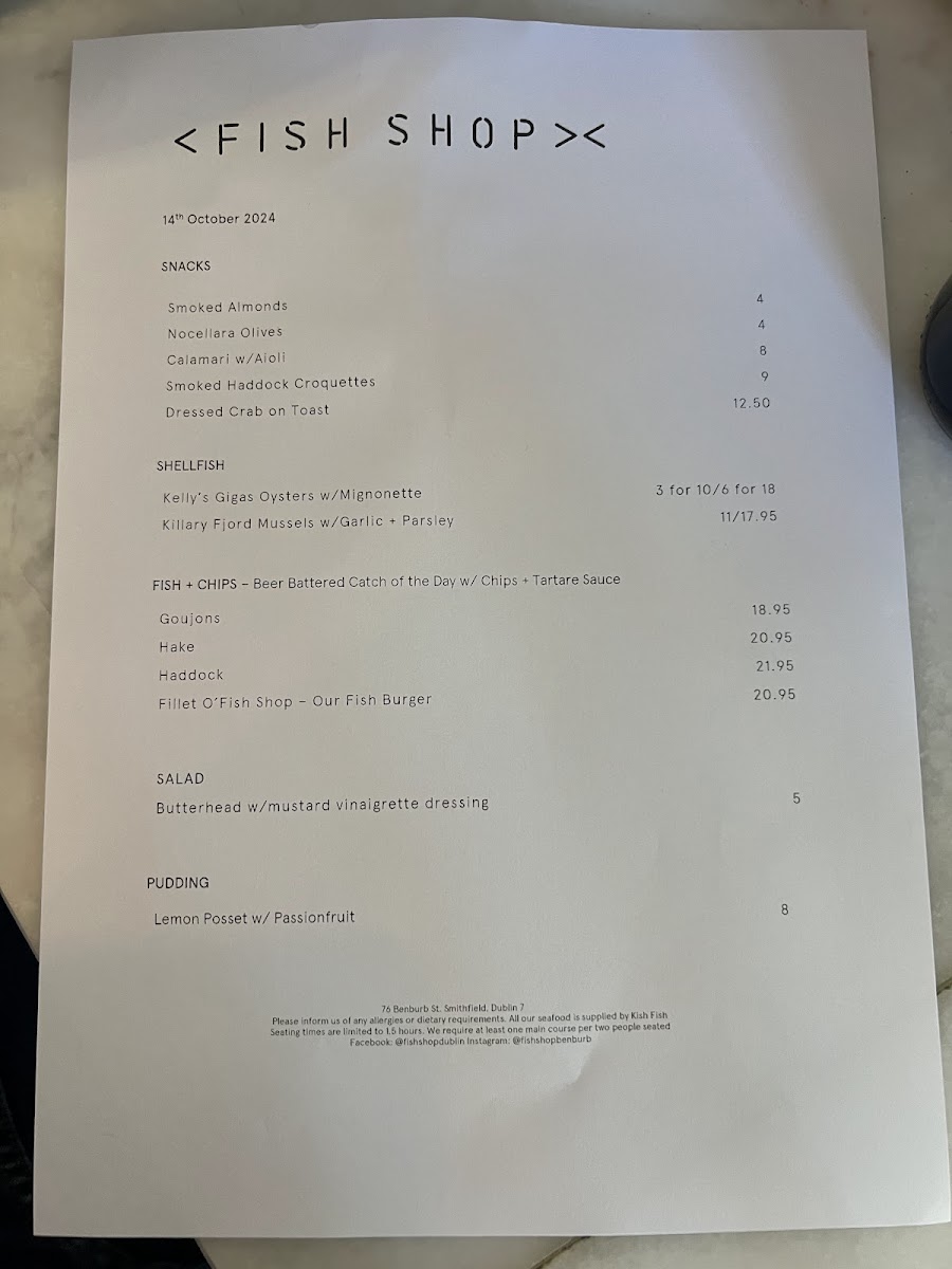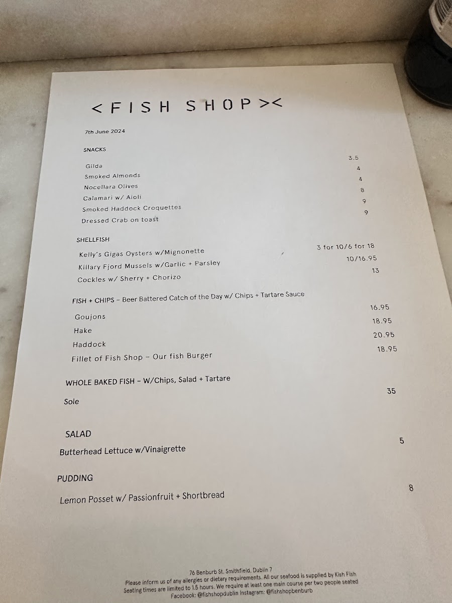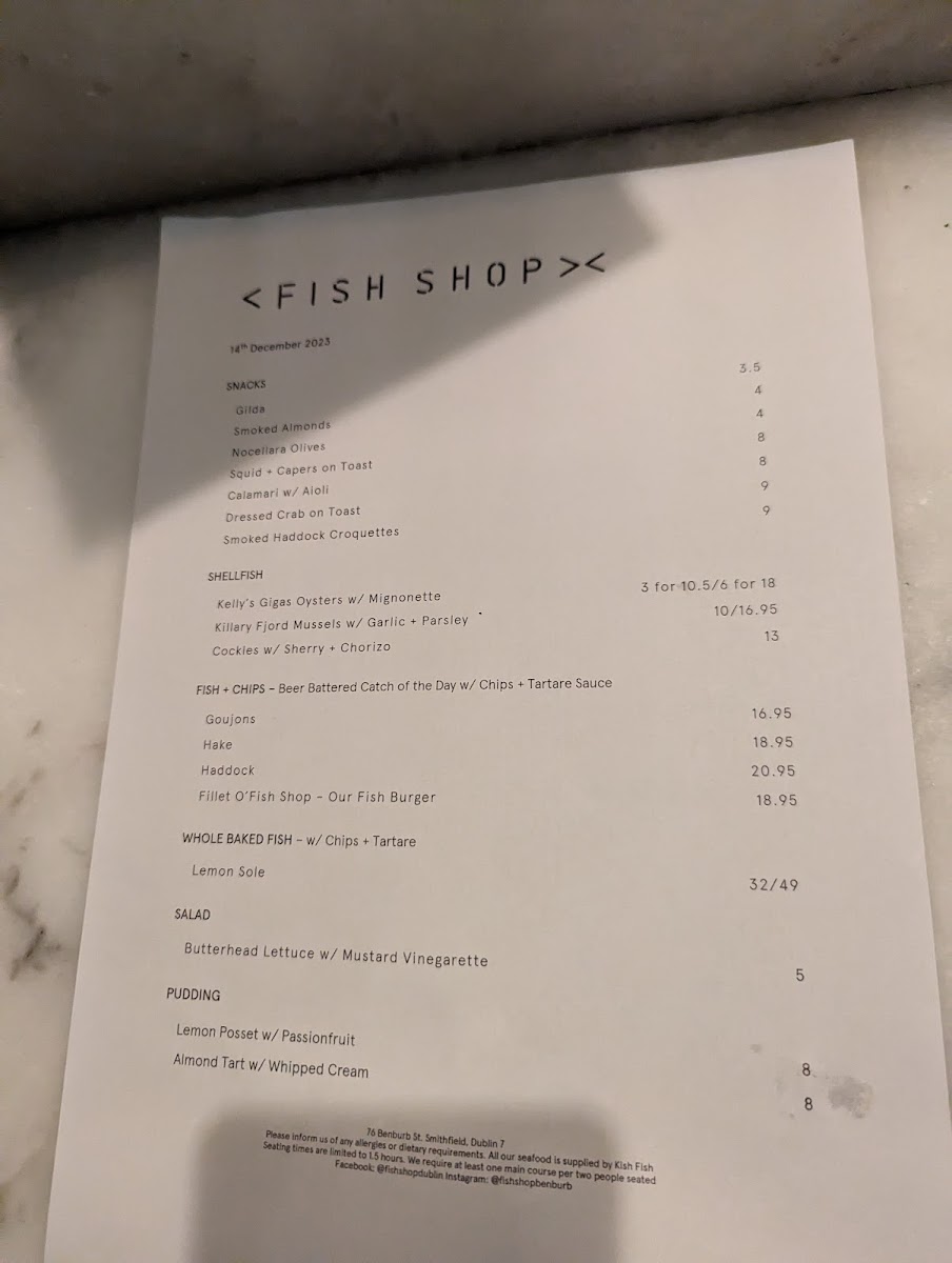 Welcome to Fish Shop, a charming culinary gem nestled at 76 Benburb St, Smithfield, Dublin. With its cozy atmosphere and just 12 meticulously arranged bar seats, it offers an intimate dining experience akin to that of a high-end restaurant.